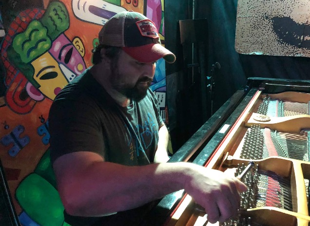 Preparing a grand piano for a night of Chicago Blues.photo by Sumito "Ariyo" Ariyoshi